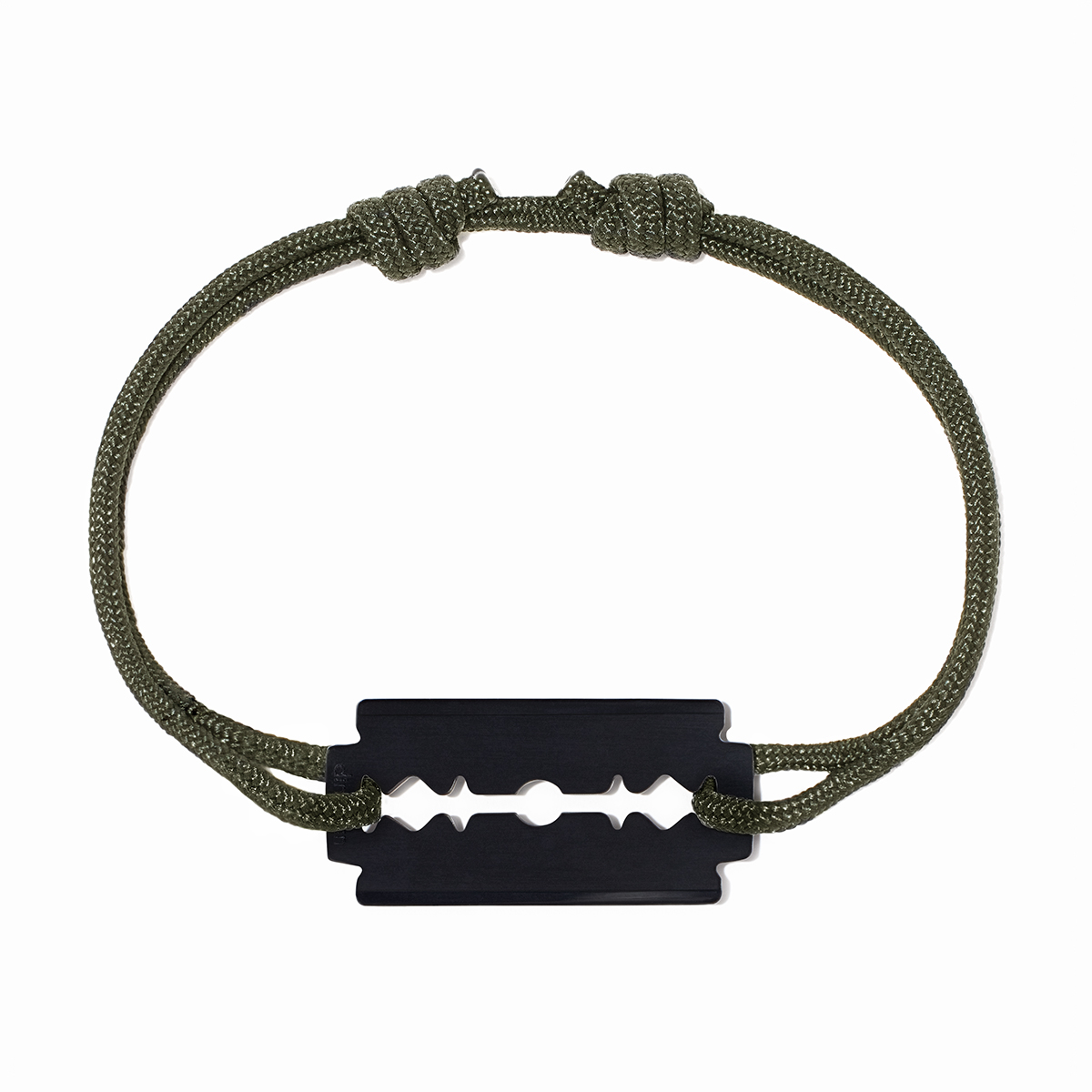 La Lame de rasoir peut également être portée en pendentif sur une chaîne forçat en titane noir 60 cm (vendue séparement).