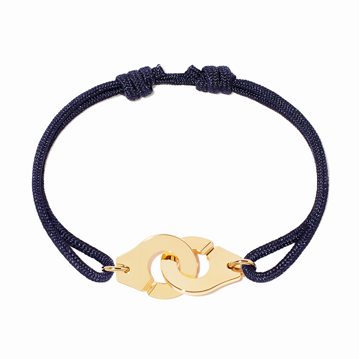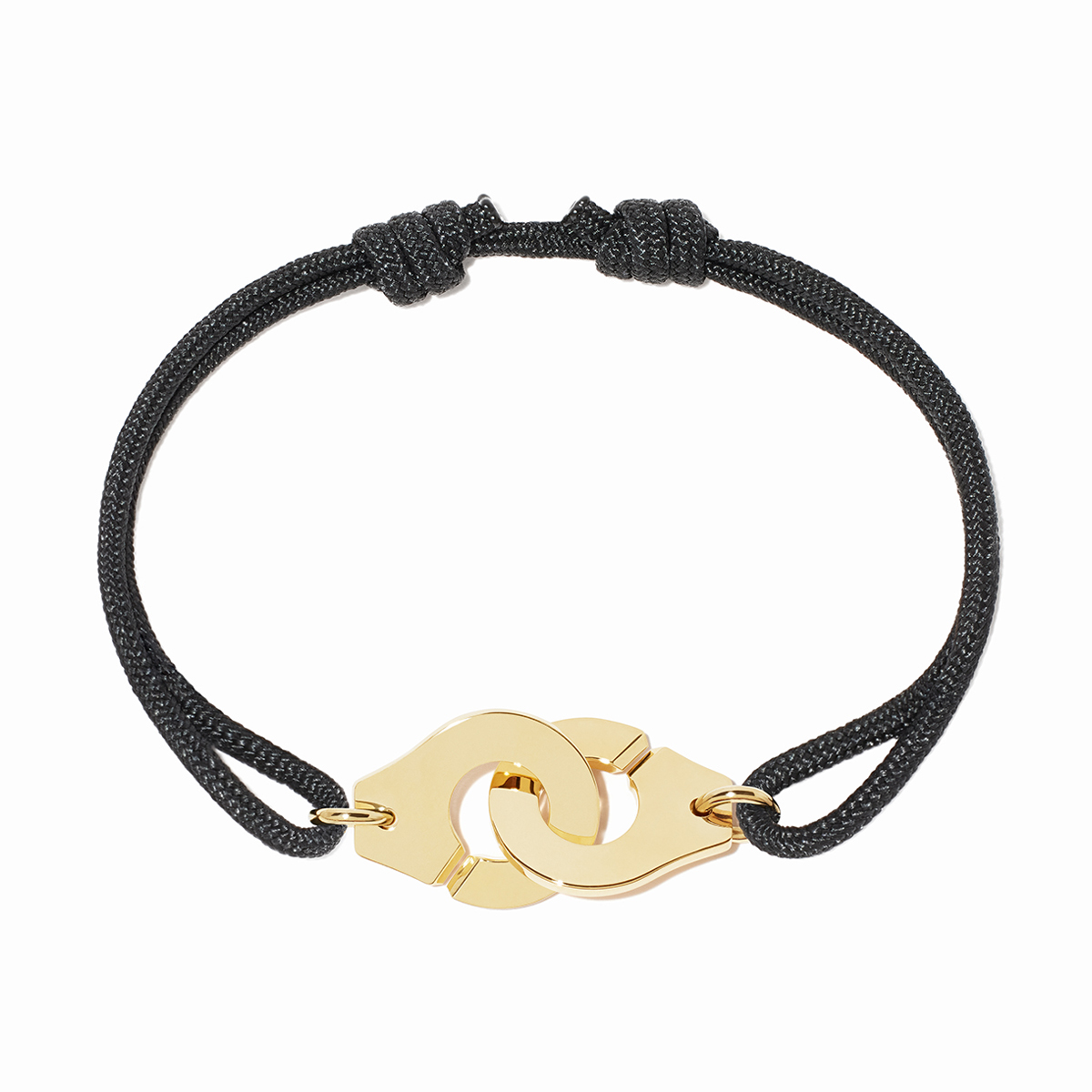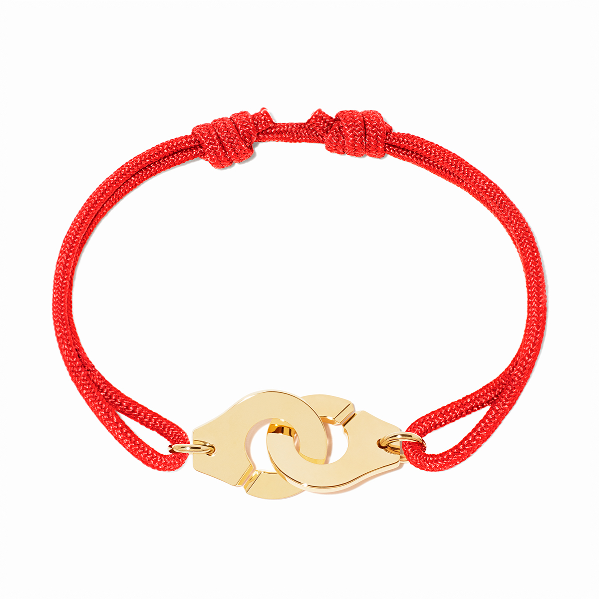 Avec un cordon, les Menottes dinh van prennent une nouvelle expression : lien souple, geste libre, attachement affirmé. Ce bracelet cordon en or jaune 18 carats version grand modèle affirme sa symbolique forte, et revendiquée avec le femoir bijou iconique depuis 1976.