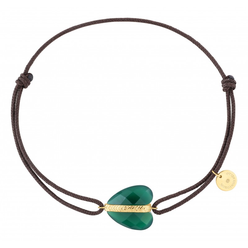 Détails : Bracelet Or Jaune 750, Agate Verte Coeur (5.92 carats), Cordon Chocolat