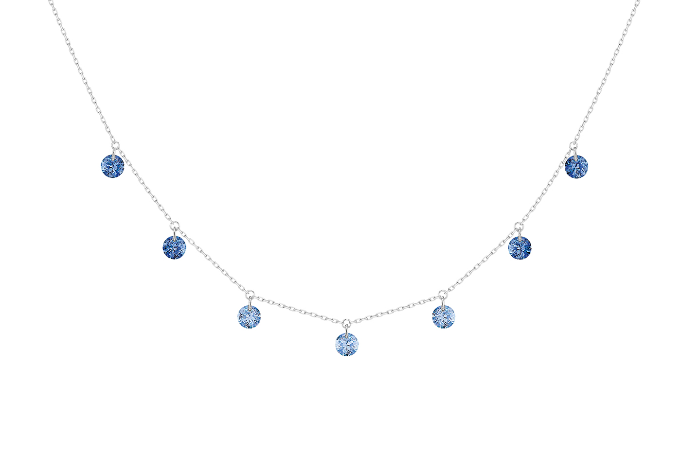 Collier La Brune & La Blonde Confetti 7 Saphirs bleus or blanc 2 carats