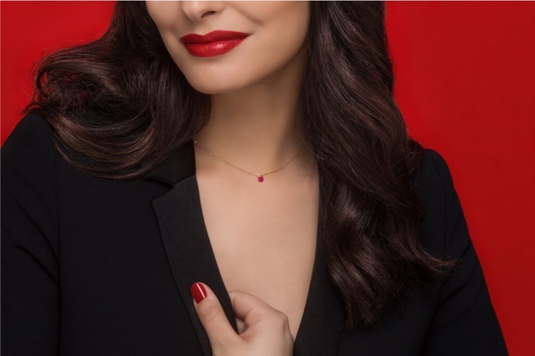Collier La Brune & La Blonde Confetti Saphir Rose Solitaire 0.30 carat or rose