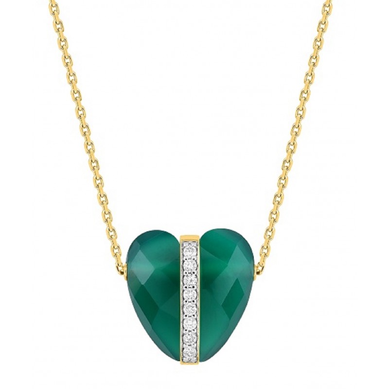 Détails : Collier Or Jaune 750, Agate Verte Coeur (5.87 carats) et Diamants (0.080 carats)