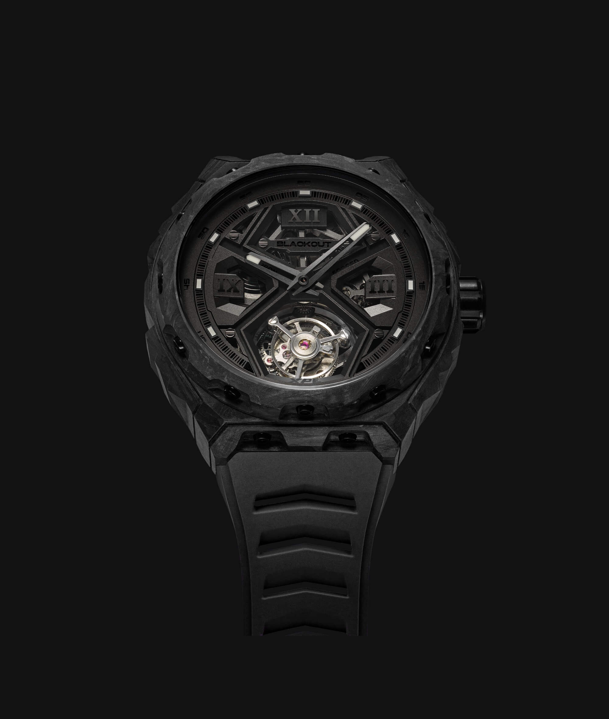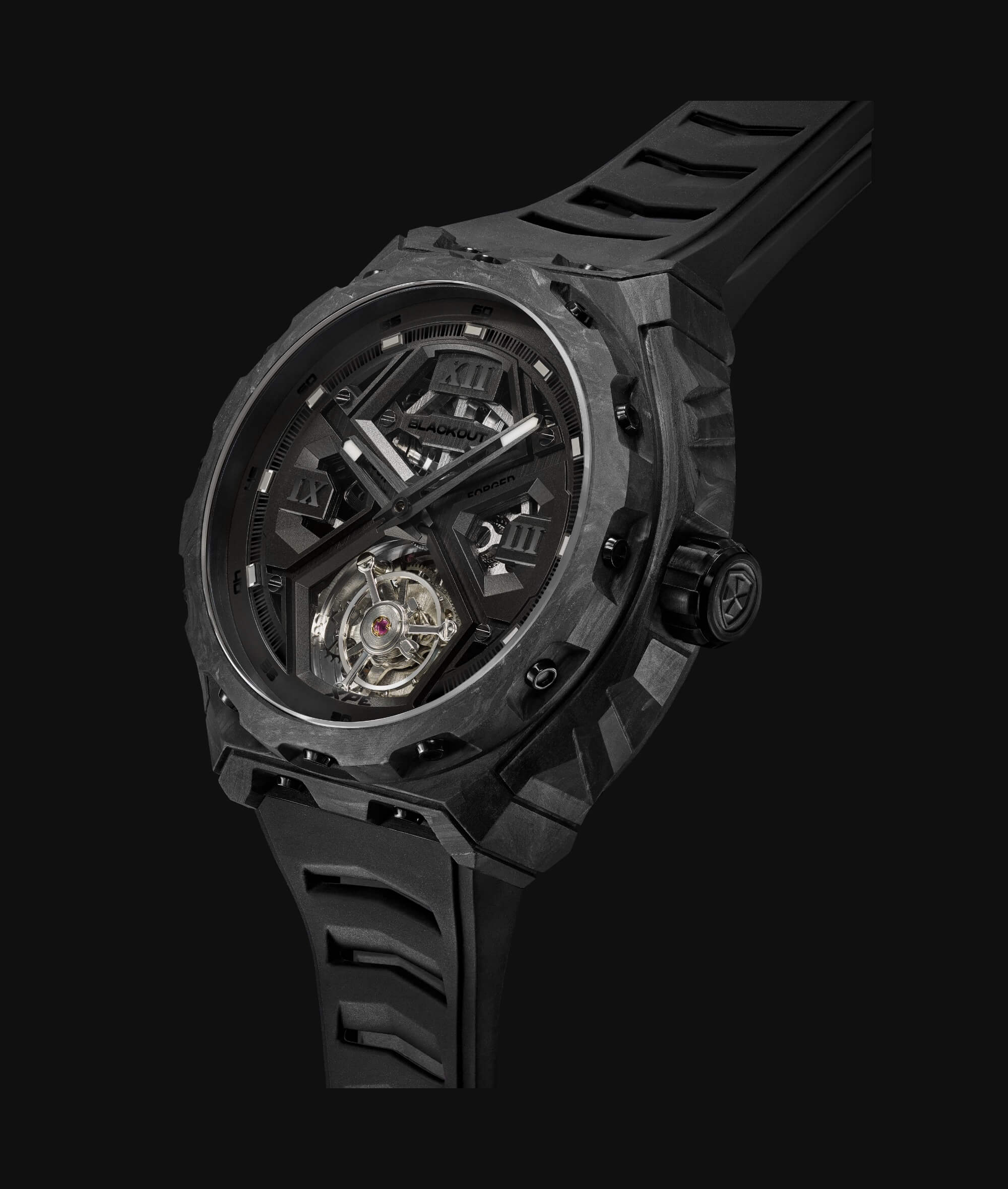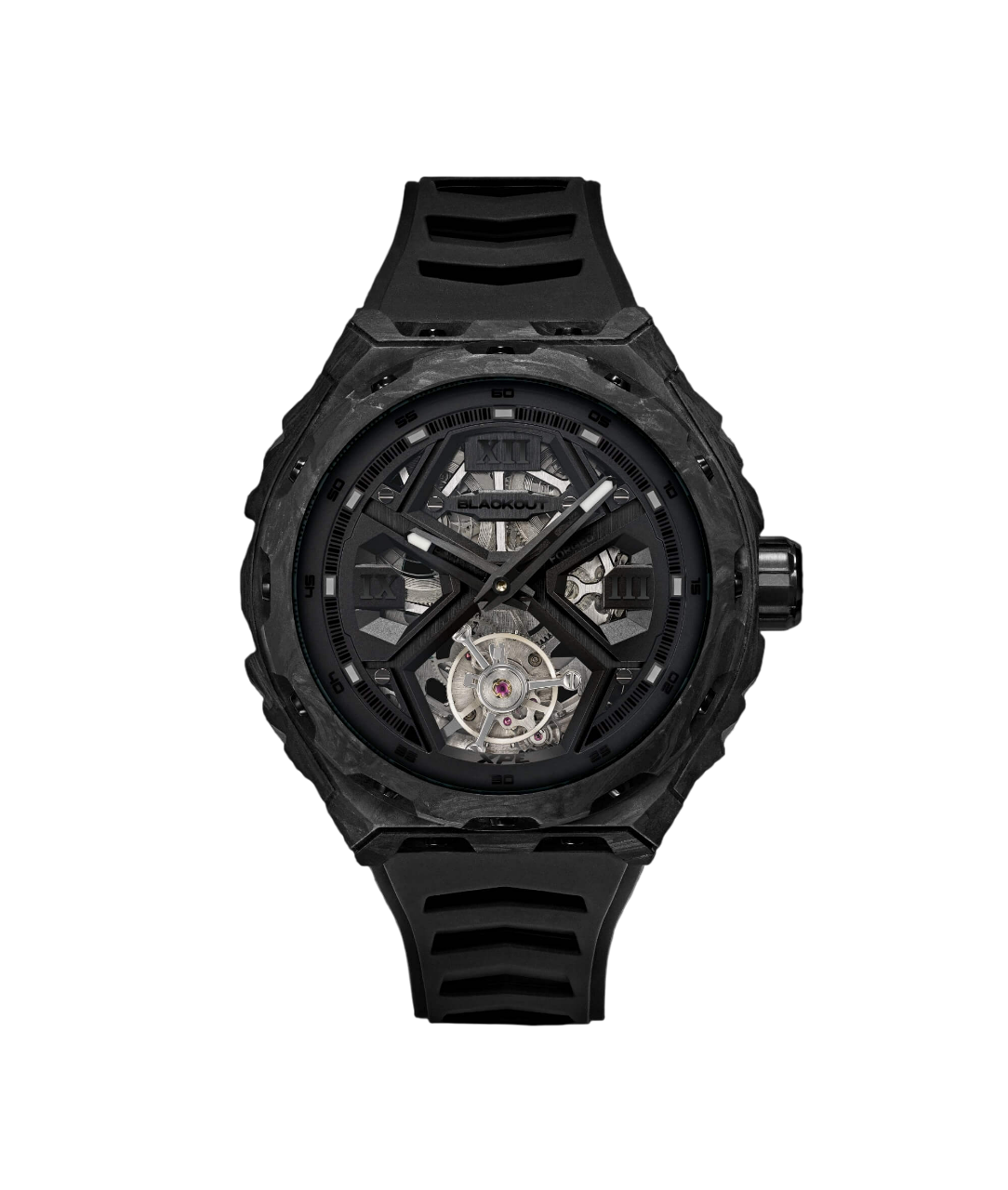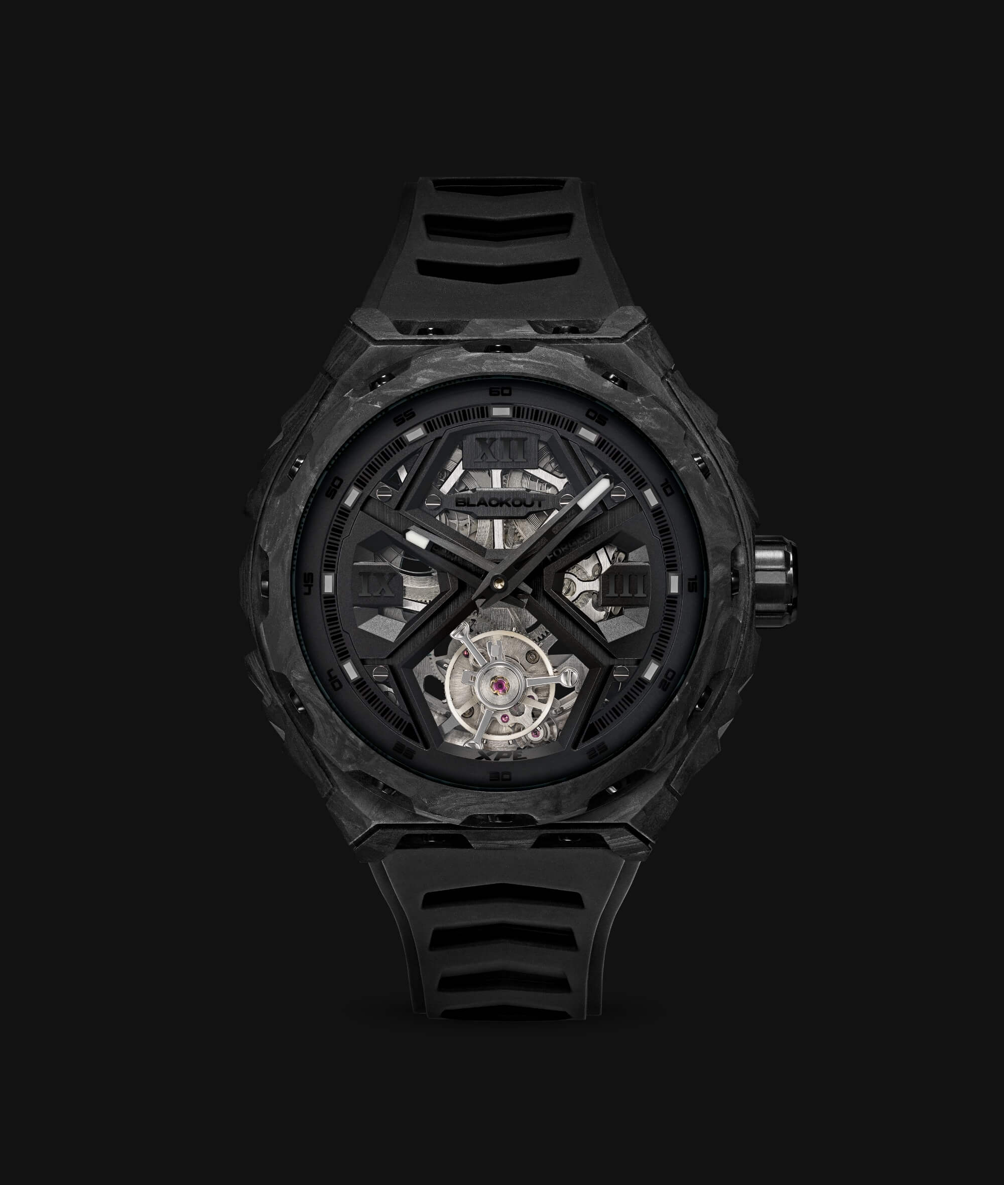 Montre Blackout Watches XPE Tourbillon UltraBlack Bracelet Caoutchouc 42.5MM