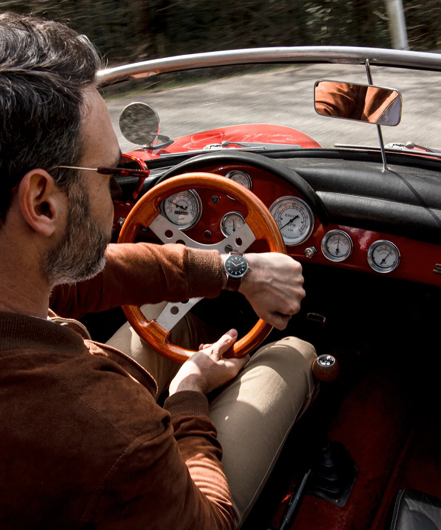 Aller d’un point A à un point B pour le simple plaisir de conduire, c’est la philosophie qui anime l’industrie automobile des 60’s. Plus qu’un simple moyen de transport, la voiture est un symbole de liberté. Inspirée de l’âge d’or de l’automobile, Série-A Élégance vous embarque pour un tour à bord des plus grandes classiques d’époque. Une montre à la fois sportive et élégante qui vous suivra dans toutes vos aventures quotidiennes… pour faire de chaque seconde un instant de plaisir !