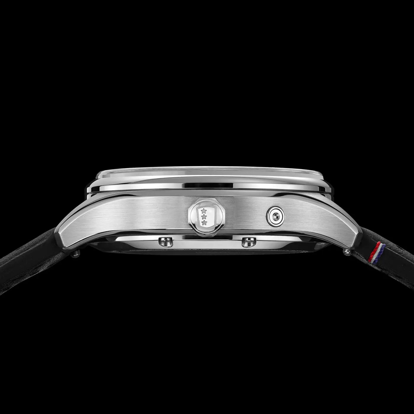 Inspiré des garde-temps vintage, cette Série-A Elégance mise tout sur la sobriété. Avec son bracelet interchangeable équipé d’attaches rapides, elle vous accompagne avec style, peu importe le moment ou la destination.