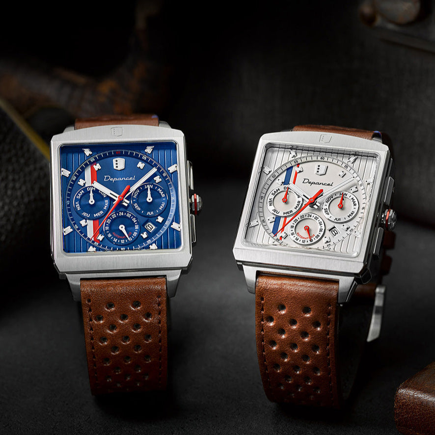 Montre Depancel Série R01 Ivory Auto Cadran Blanc Bracelet Cuir 43MM