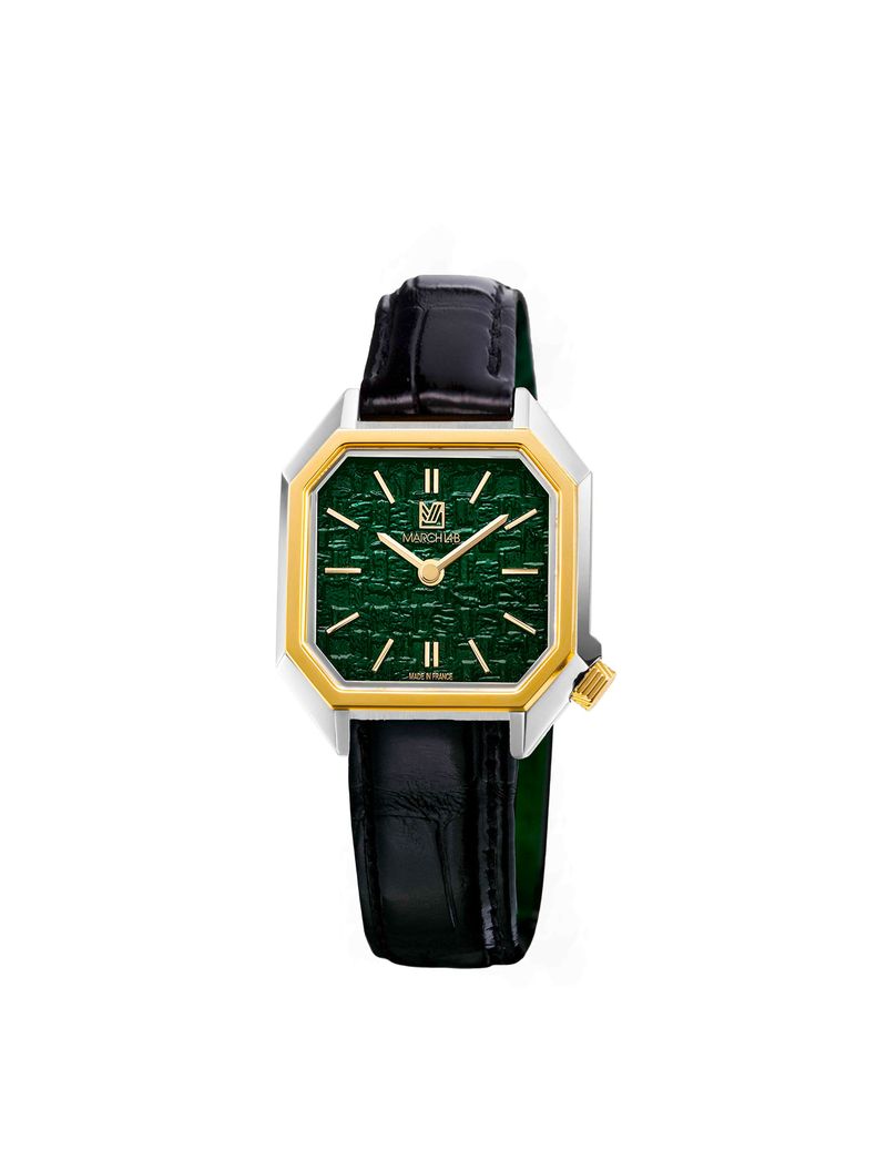 Montre MARCH LA.B Lady Mansart Tweed Emerald Quartz Cadran Vert Bracelet Cuir