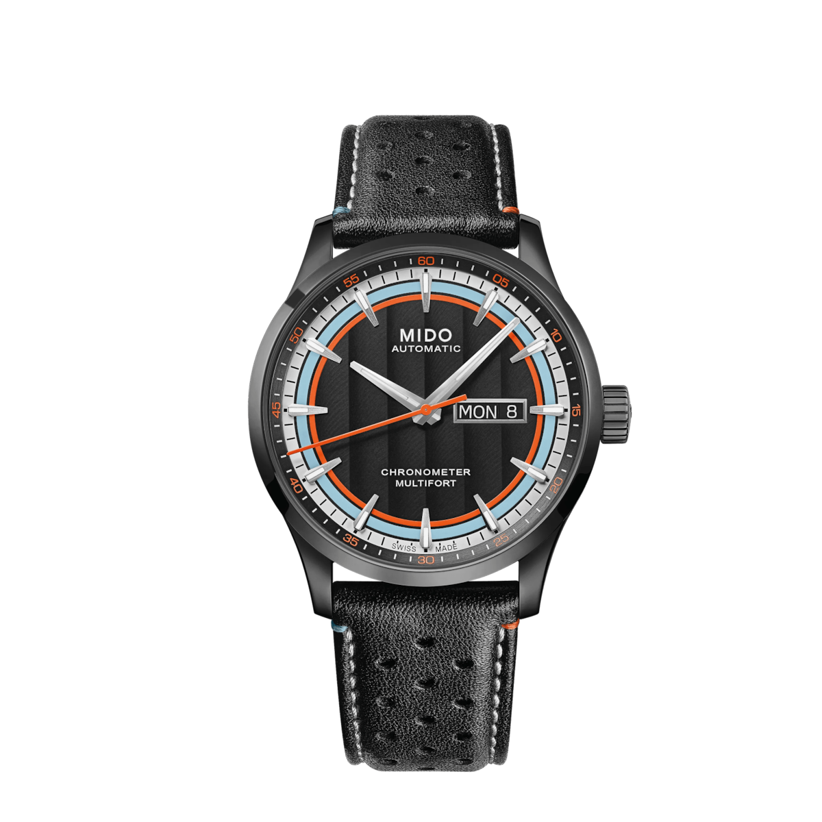 Montre Mido Multifort Chronometer 1 Racer Auto Cadran Noir Bracelet Cuir 42MM