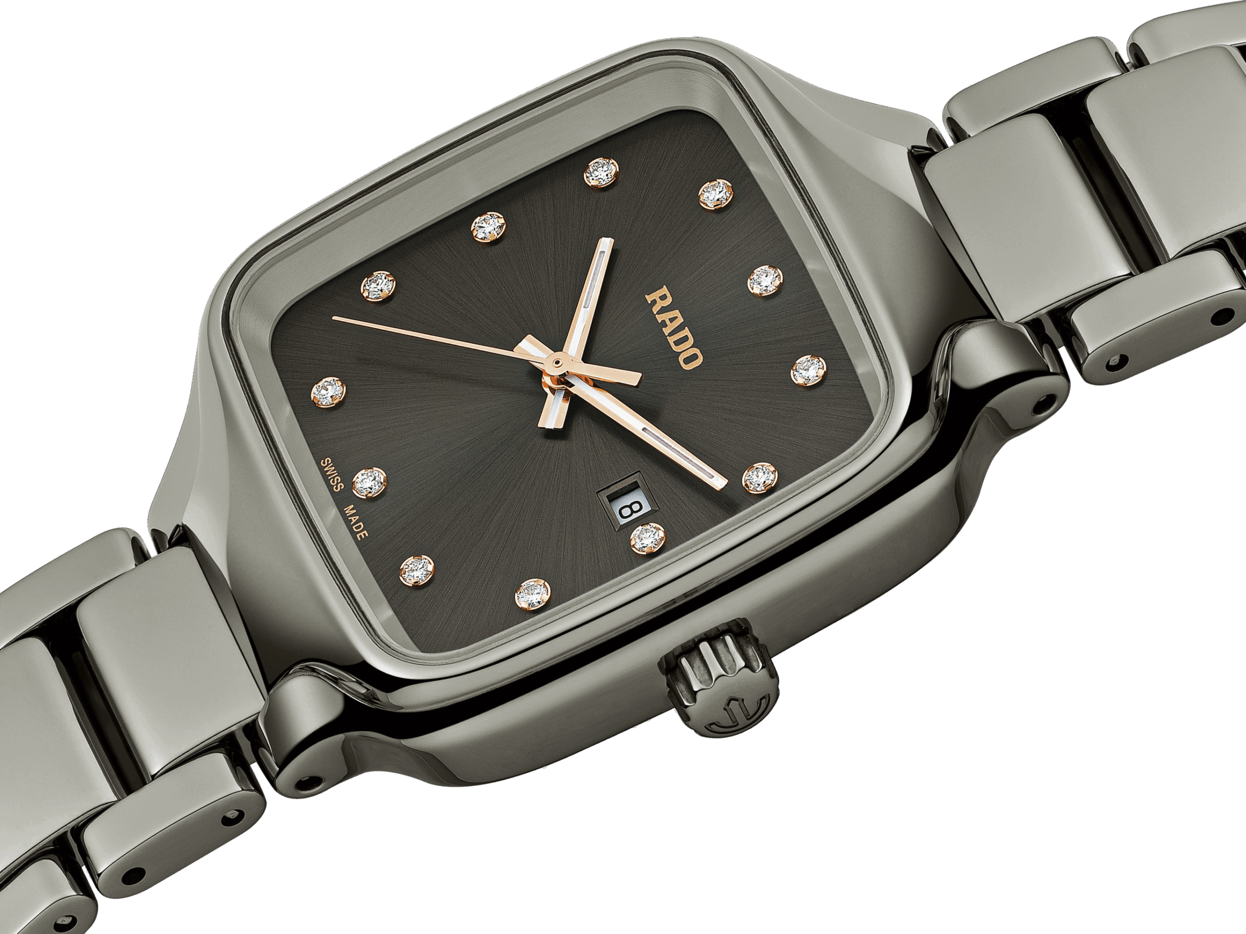 Rado se lance dans la création de montres en céramique haute technologie carrées. La True Square représente une nouvelle approche de la forme emblématique signée Rado. Notre première montre fabriquée à partir d’un boîtier carré monobloc injecté en céramique haute technologie, la True Square est légère, résistante aux rayures et confortable au poignet. La Rado True Square Diamonds, design et distinctive, incarne le visage de l’avenir.