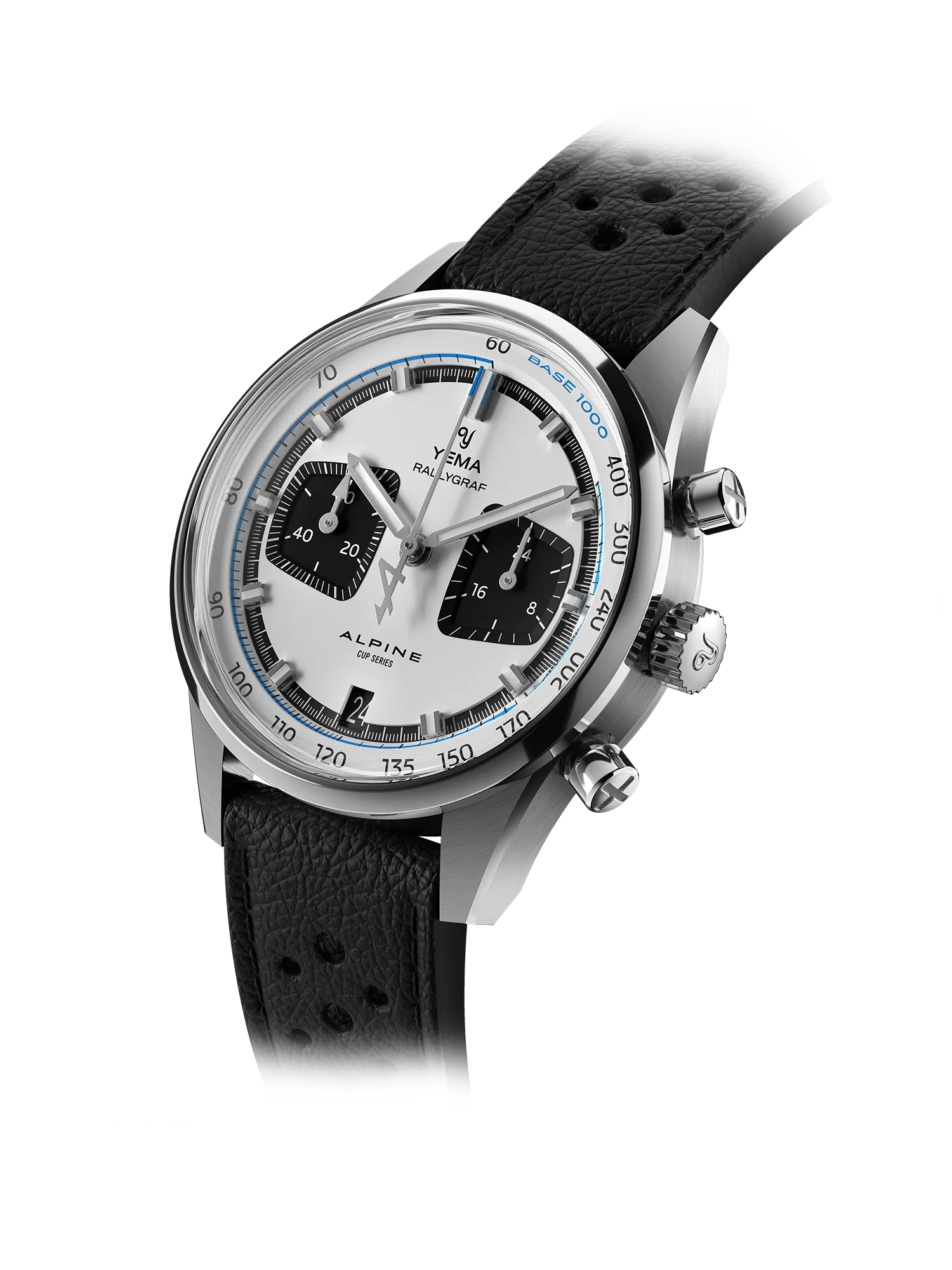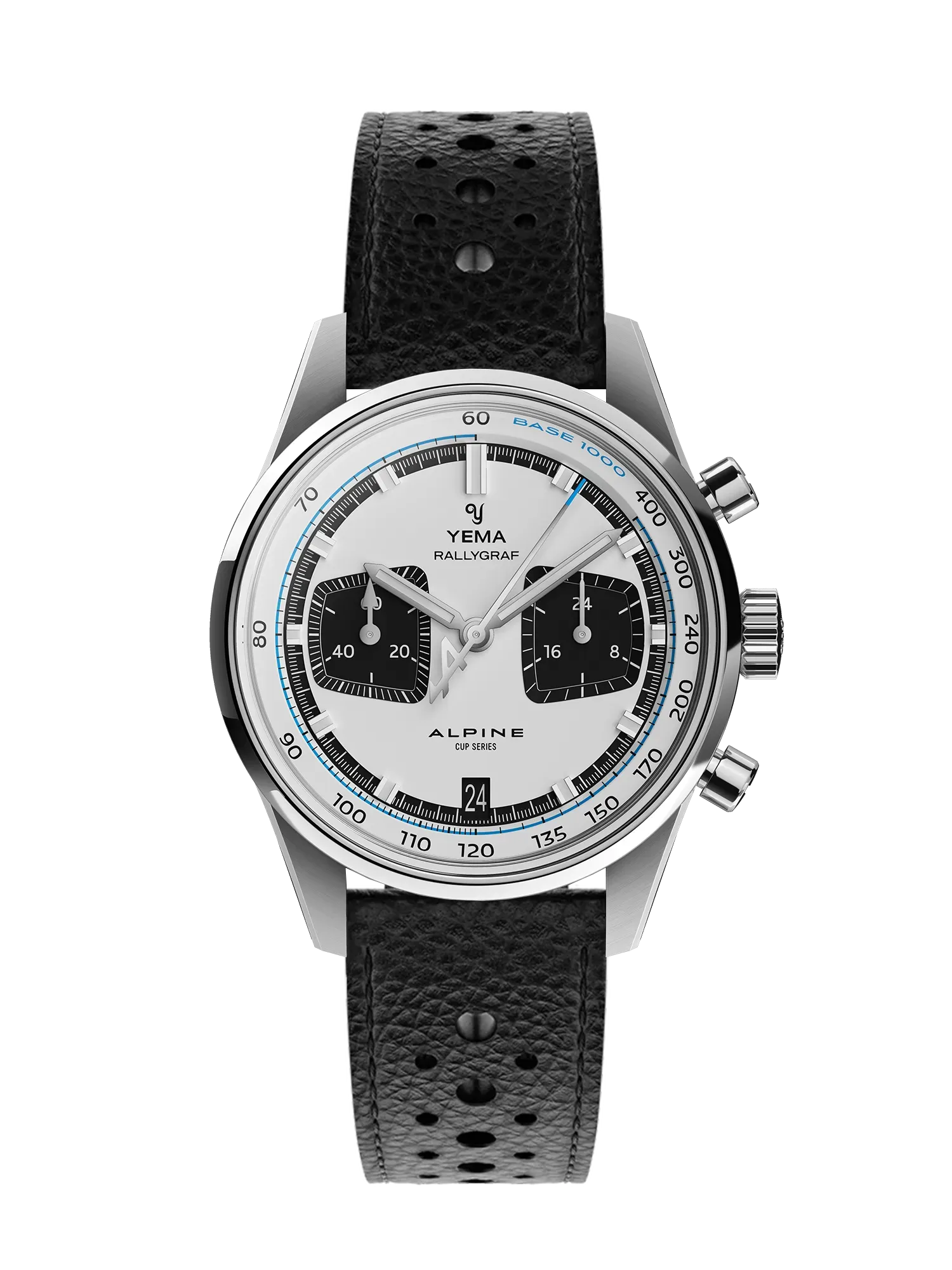 Montre Yema Rallygraf Alpine Cup Series Meca-Quartz Cadran Blanc Bracelet Cuir 39MM