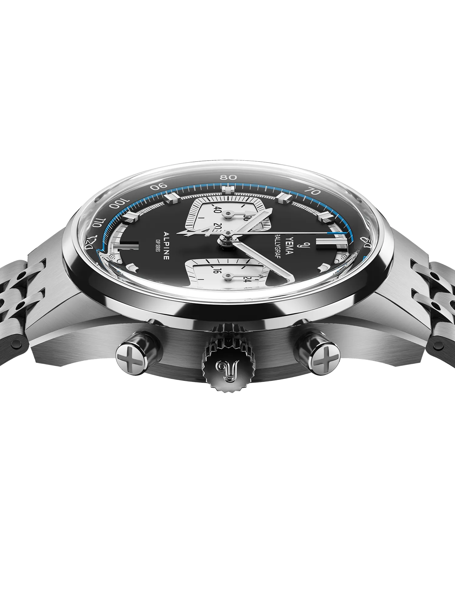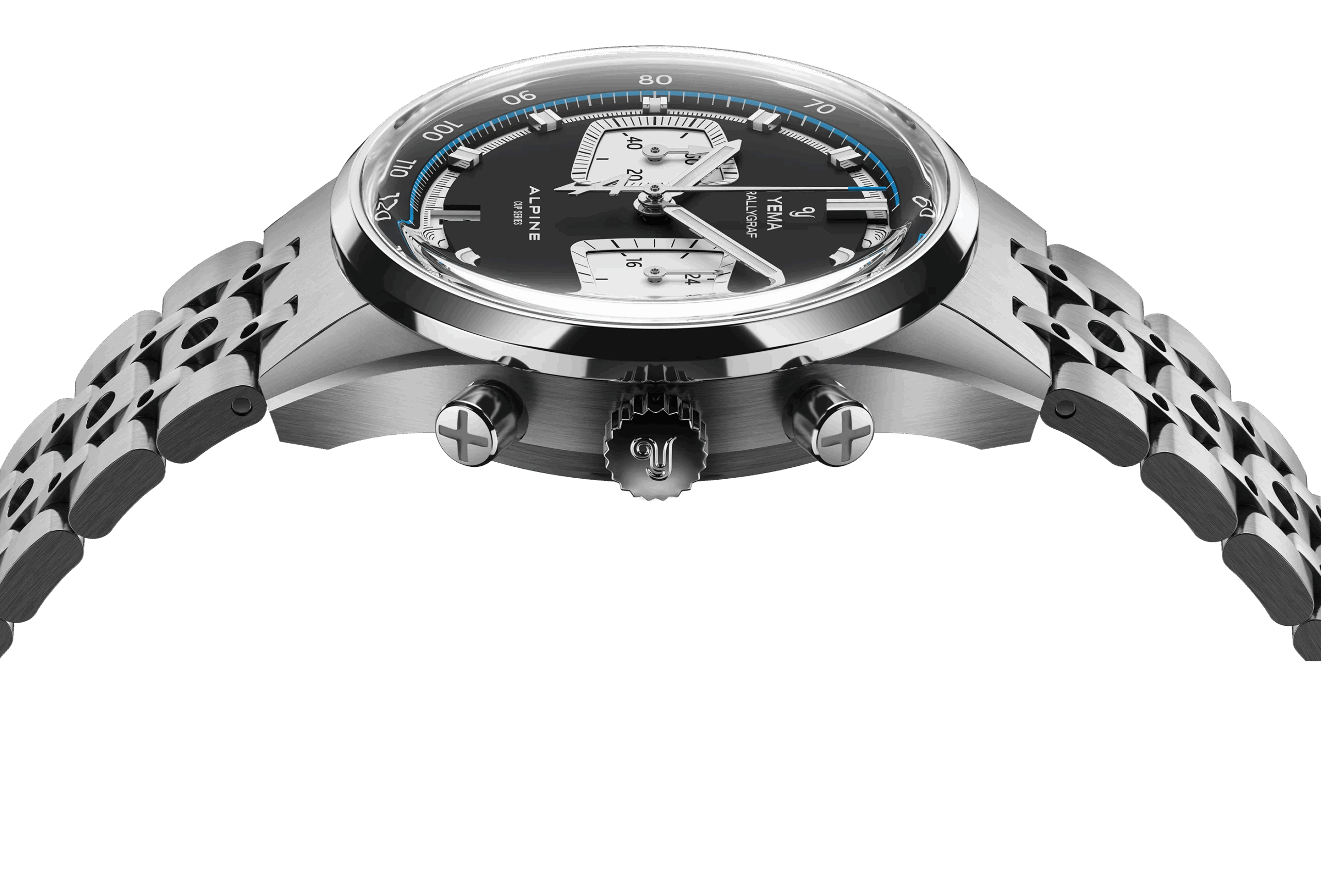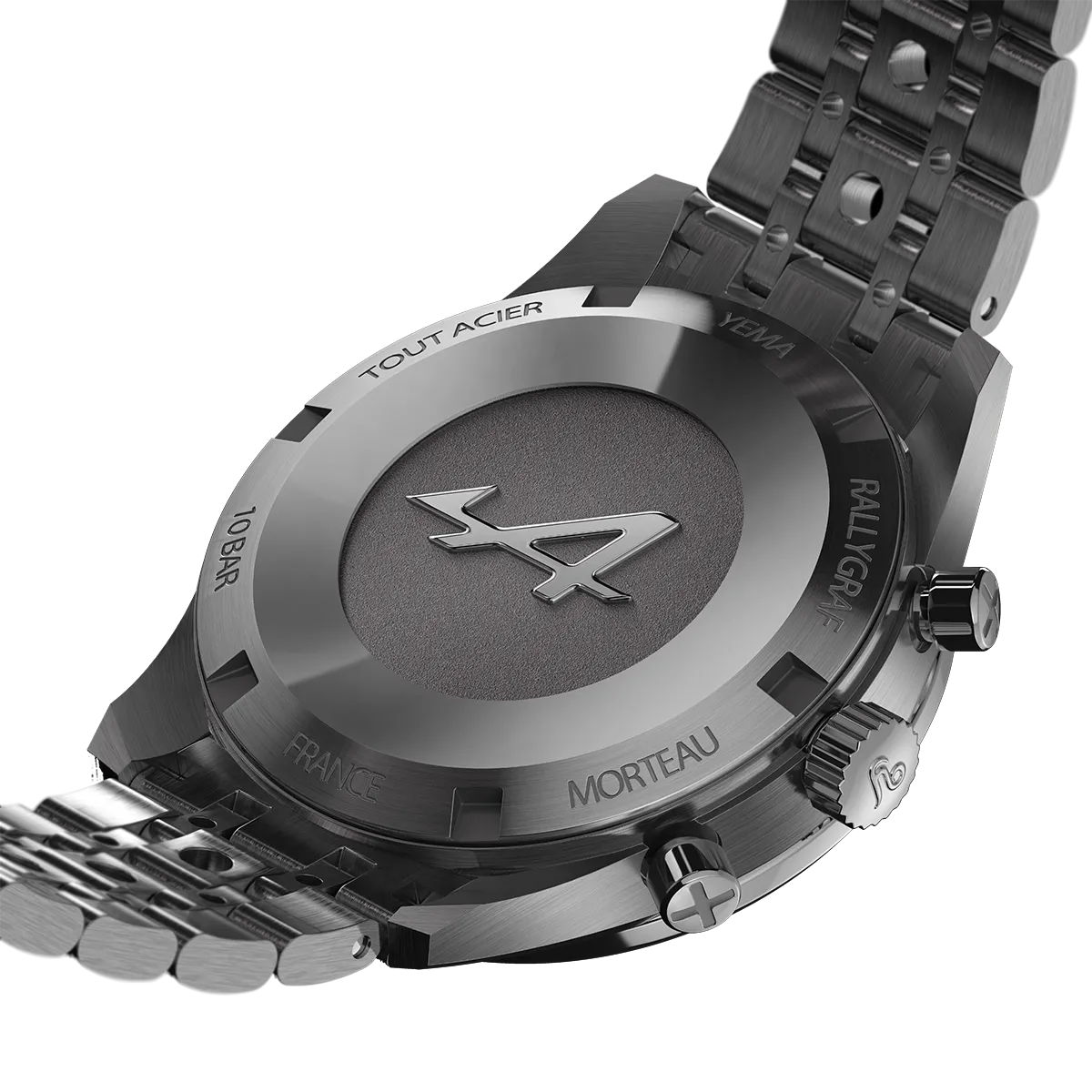 Spécialement conçu pour la Rallygraf Alpine Elf Cup Series, le bracelet en acier YEMA Rallye se distingue par son design perforé unique, inspiré des gants de course vintage. Entièrement réalisé en acier inoxydable brossé, il conjugue caractère sportif et charme néo‑vintage, incarnant parfaitement l’ADN racing de notre chronographe. Le bracelet s’affine progressivement vers le fermoir pour un confort optimal et une silhouette plus élégante au poignet, tandis que son fermoir déployant intégré, doté d’un cran de sécurité, assure un ajustement sûr et confortable à tout moment.