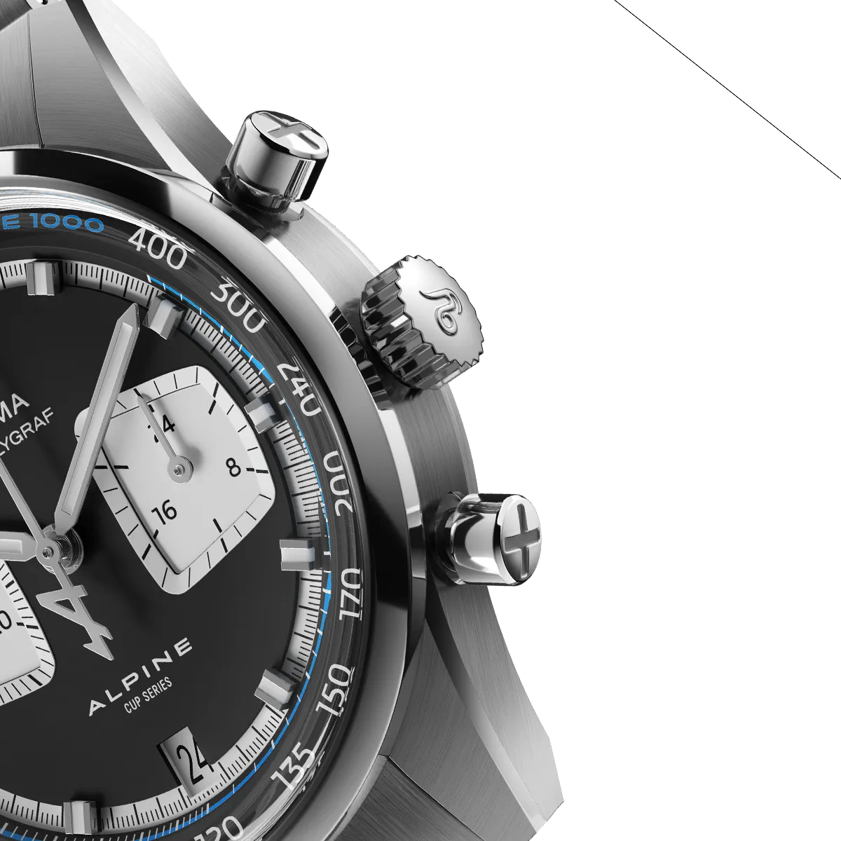 La couronne et les poussoirs du chronographe ont été entièrement redessinés, apportant une signature visuelle distincte et renforçant le caractère sportif de la pièce.