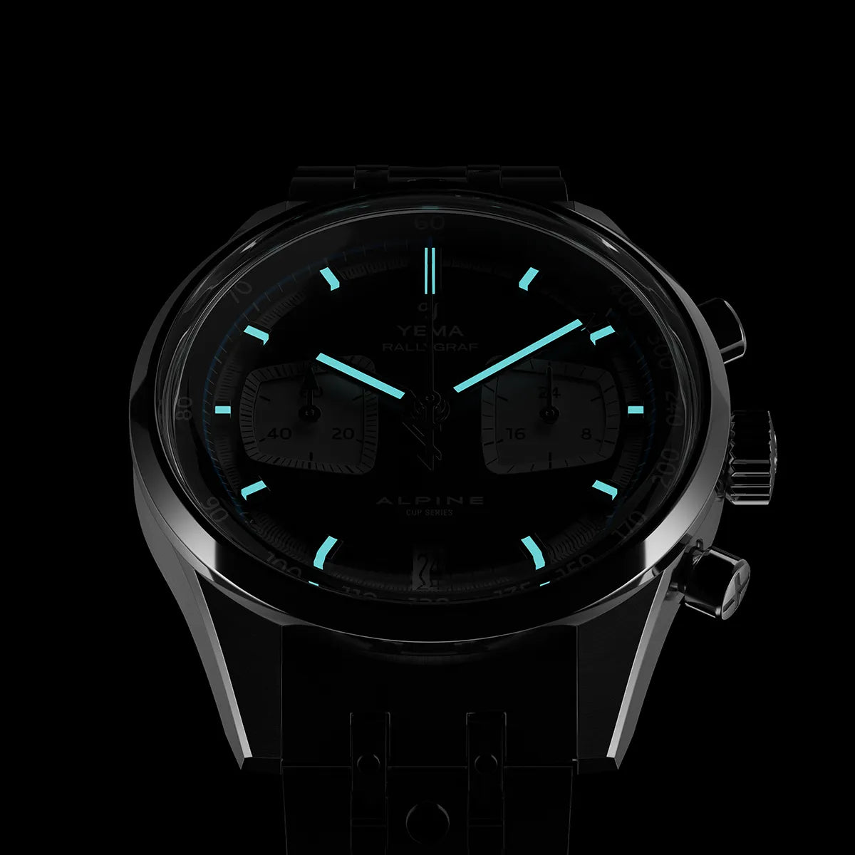 Les aiguilles et les index sont revêtus d’une couche de Super-LumiNova BGW9. La Rallygraf offre donc une parfaite lisibilité dans l’obscurité.