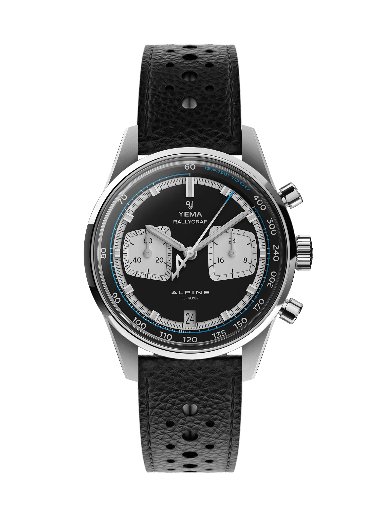 Montre Yema Rallygraf Alpine Cup Series Meca-Quartz Cadran Noir Bracelet Cuir 39MM