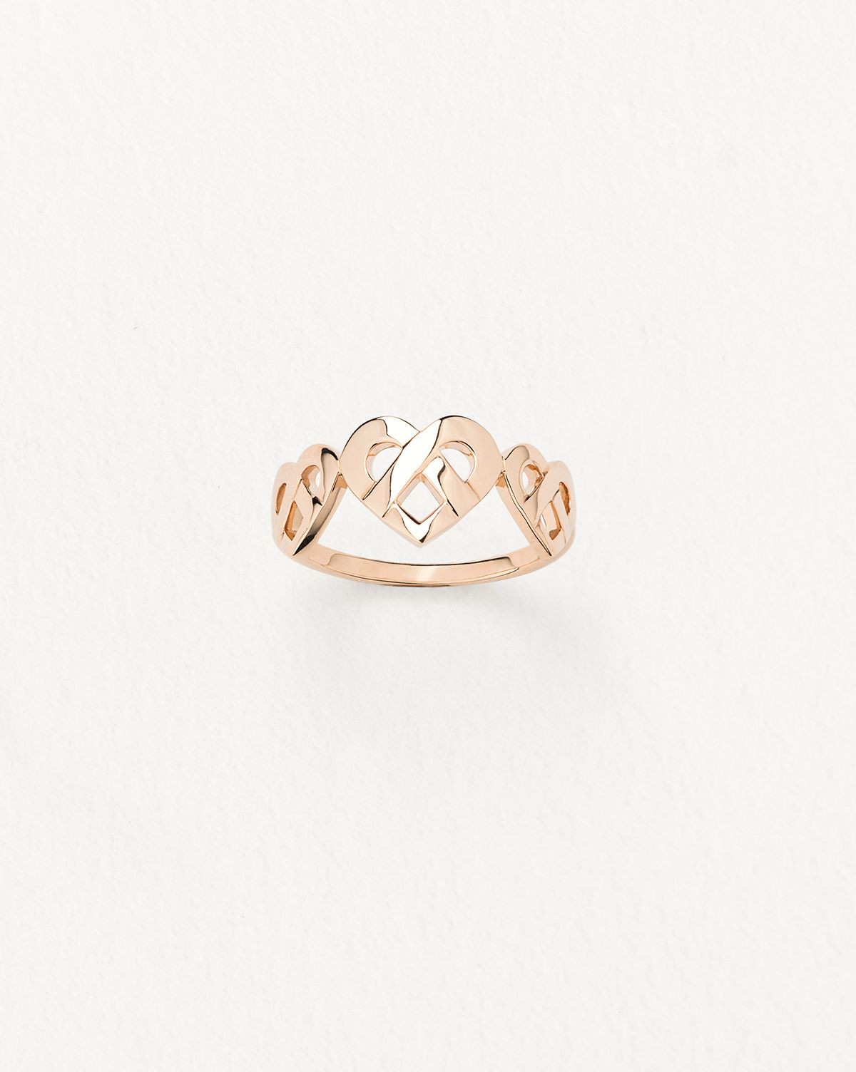 Bague Cœur Entrelacé ornée de trois cœurs en or rose.