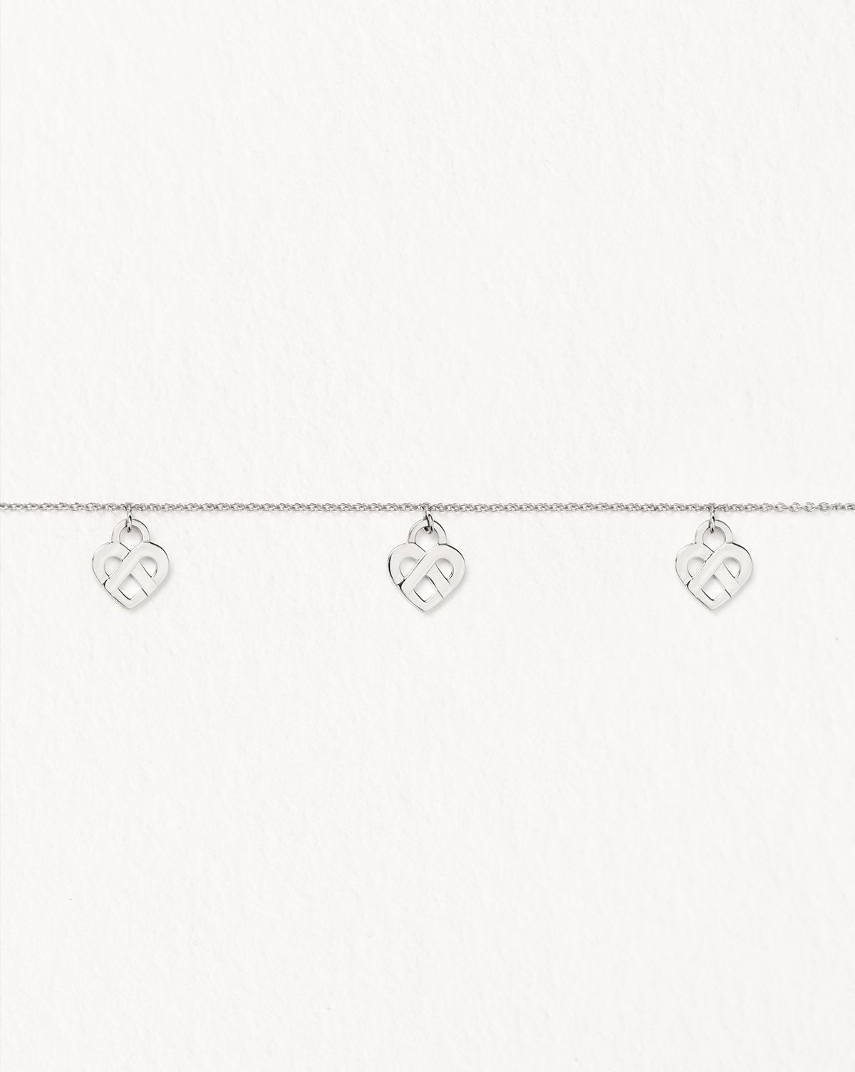 Bracelet Cœur Entrelacé orné de trois cœurs sur chaîne en or blanc.