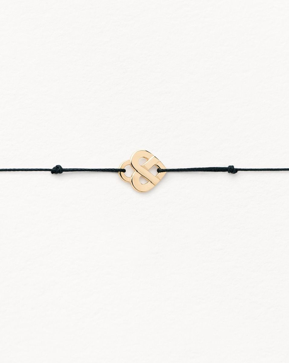 Bracelet Cœur Entrelacé en or jaune sur cordon.